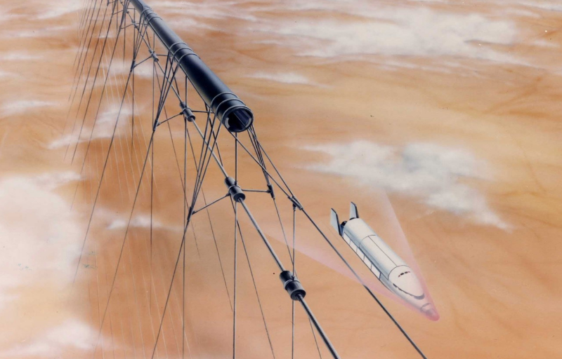 Полоса разгона может протянуться над всей поверхности земли. Опасность несет звуковая ударная волна, так как поезд летит с гиперзвуковой скоростью над уровнем моря, что губительно для аппарата. Во избежание этого, поезд будет стартовать на орбиту с огромной магнитной трубы, протяжностью 130км. И это позволит разогнаться примерно до 32000 км/ч