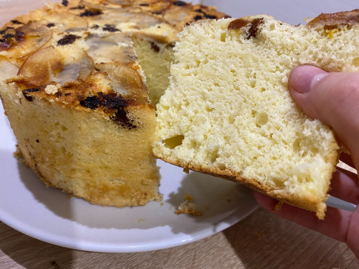 На дно формы я положила нарезанные яблока, затем поспала корицей, потом насыпала изюма, и цедру апельсина (лимона не было дома).
