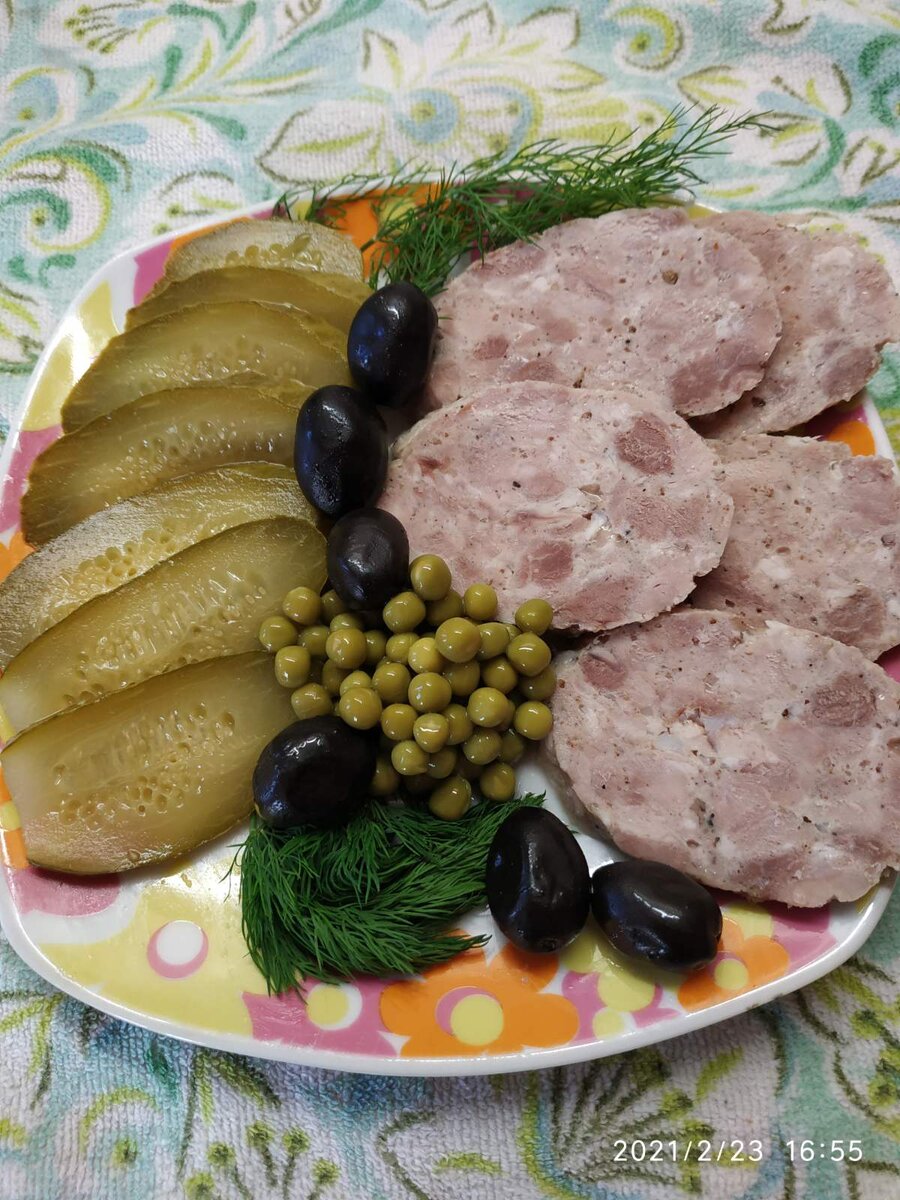 - Охлажденный колбасный батон ножницами освободить от пленки, нарезать и подавать на стол.
