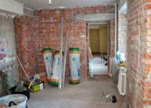 - Монтаж новых стен и проёмов. После демонтажа строители грамотно осуществляют перенос перегородок, обустраивают заново дверные и оконные проёмы. До чистовой отделки ещё далеко, поскольку далее придётся менять проводку и трубы, а также, старые коммуникации в доме.