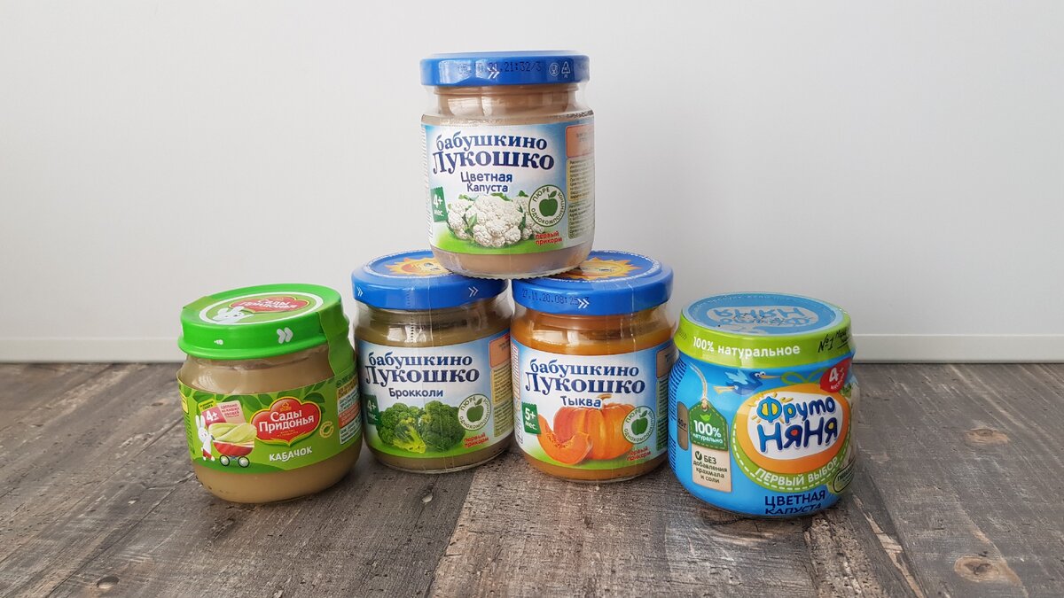 Купила я в магазине несколько баночек однокомпонентного пюре: кабачок, цветная капуста, брокколи, тыква.