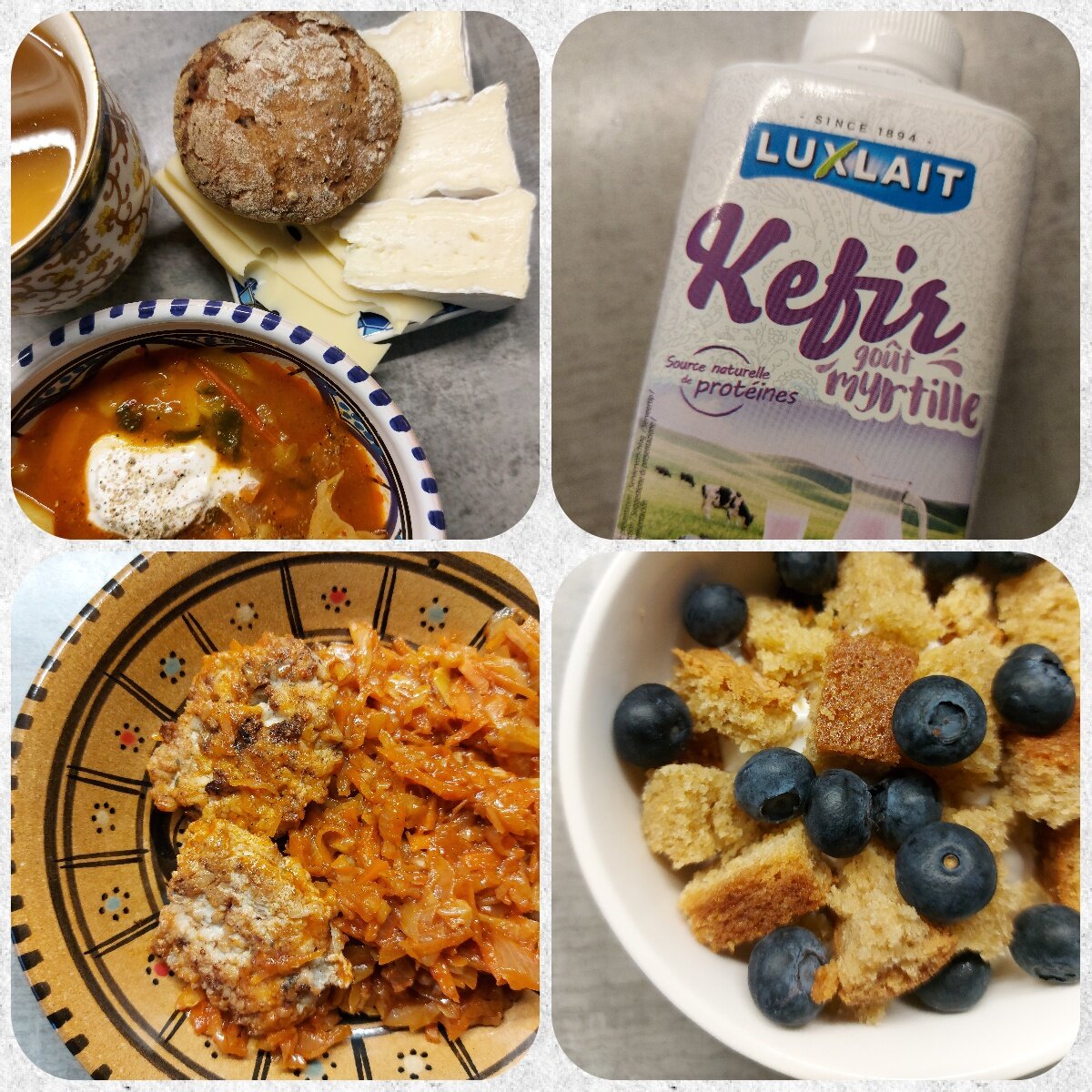 3 остальных фото- ужин: кефир с черникой, думала зря купила, будет сладкий, но нет , очень понравился, капуста с 2 куриными котлетками и десерт: греческий йогурт, домашний миндальный кекс и черника и все это в 18.15 вечера и много много воды, даже тизан не пила, чтобы на сладкое соблазниться т к завтра взвешивание.