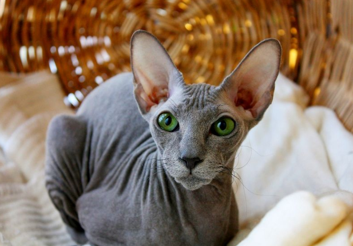 Невероятно популярная порода котов, которая не придется каждому по душе из-за своего внешнего вида, который многим не очень нравится. Она была выведена только в две тысяча четвертом году и считается относительно новой. Этот питомец появился в результате скрещивания таких пород котов как скоттиш-фолд и донской сфинкс. Уши этого котофея расположены высоко и загнуты вперед, ну, а отсутствие шерсти делает из нее немного “космического”, “наземного” и необыкновенного питомца.