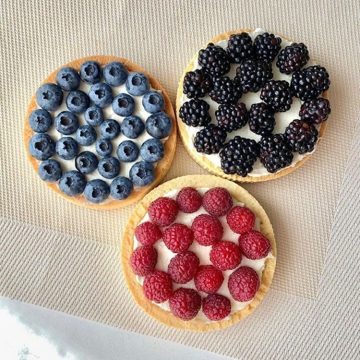 🍨Приготовление:🥞К мягкому сливочному маслу добавим муку и замешиваем тесто в крошку. Теперь, добавляем сахарную пудру, яйцо и замешиваем однородное мягкое тесто. Отправляем в холодильник на 2 часа. 🥞Готовое тесто раскатываем между бумагой для выпечки. Формочкой выдавливаем круг, вырезаем полоску выше формочки и формируем тарт, убираем лишнее тесто. Отправляем в холодильник на 15 минут. Затем прокалываем вилкой и выпекаем при 160 градусах 18-20 минут. ❗️С данного количества получится примерно 6 шт. Готовый тарт сразу прижимаем стаканом. 🥞Для крема к творогу добавляем молоко и пробиваем. Теперь добавим растопленный белый шоколад и пробиваем до однородности. 🥞В тарт выкладываем крем, затем ягоду и получаем такую красоту.