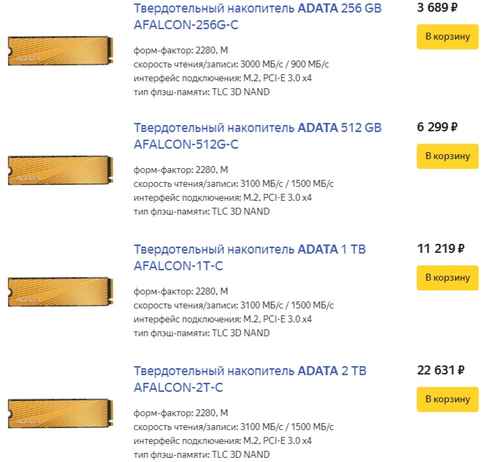 Твердотельный накопитель ADATA Falcon 512 GB доступен в вариантах на 256 ГБ, 512 ГБ, 1 ТБ и 2 ТБ.