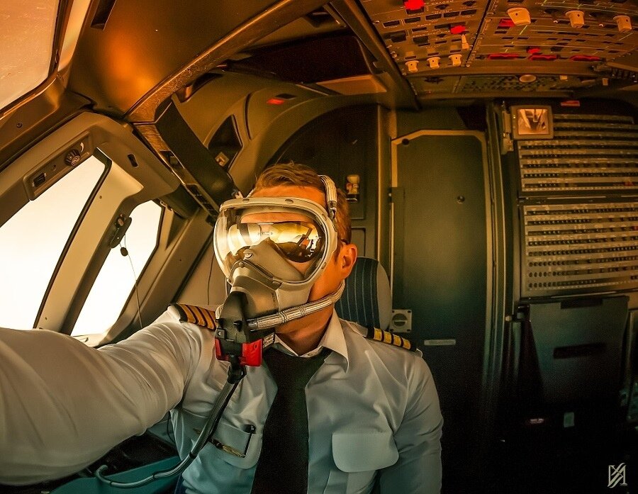 Помимо кислорода они защищают глаза пилотов от дыма и в них встроены микрофоны.