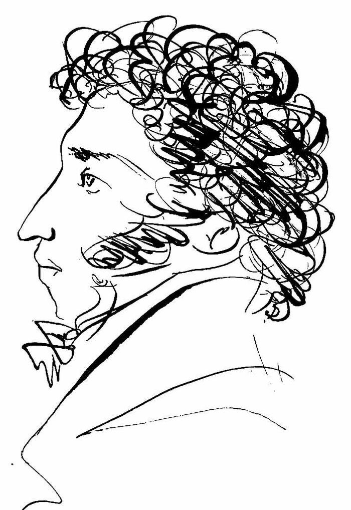 Именно в одной старой ученической тетради по геометрии, принадлежащей школьнику шестого класса, находим мы портрет Пушкина. Владелец её и автор рисунке Павлуша Вяземский, сын поэта П.А Вяземского.