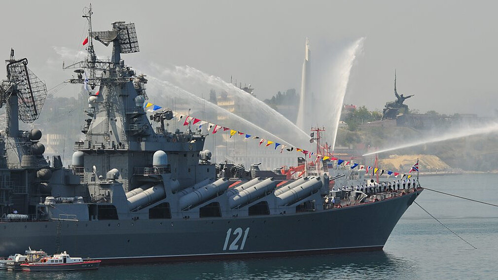 Первое место в рейтинге досталось флагману Черноморского флота — ракетному крейсеру "Москва" водоизмещением около 11,5 тонны и длиной 186 метров. Его экипаж составляет 480 человек, на вооружении имеются противокорабельные ракеты и противолодочные торпеды, зенитные комплексы С-300Ф "Форт", автоматические пушки и "многочисленные" ракеты ближнего радиуса действия.