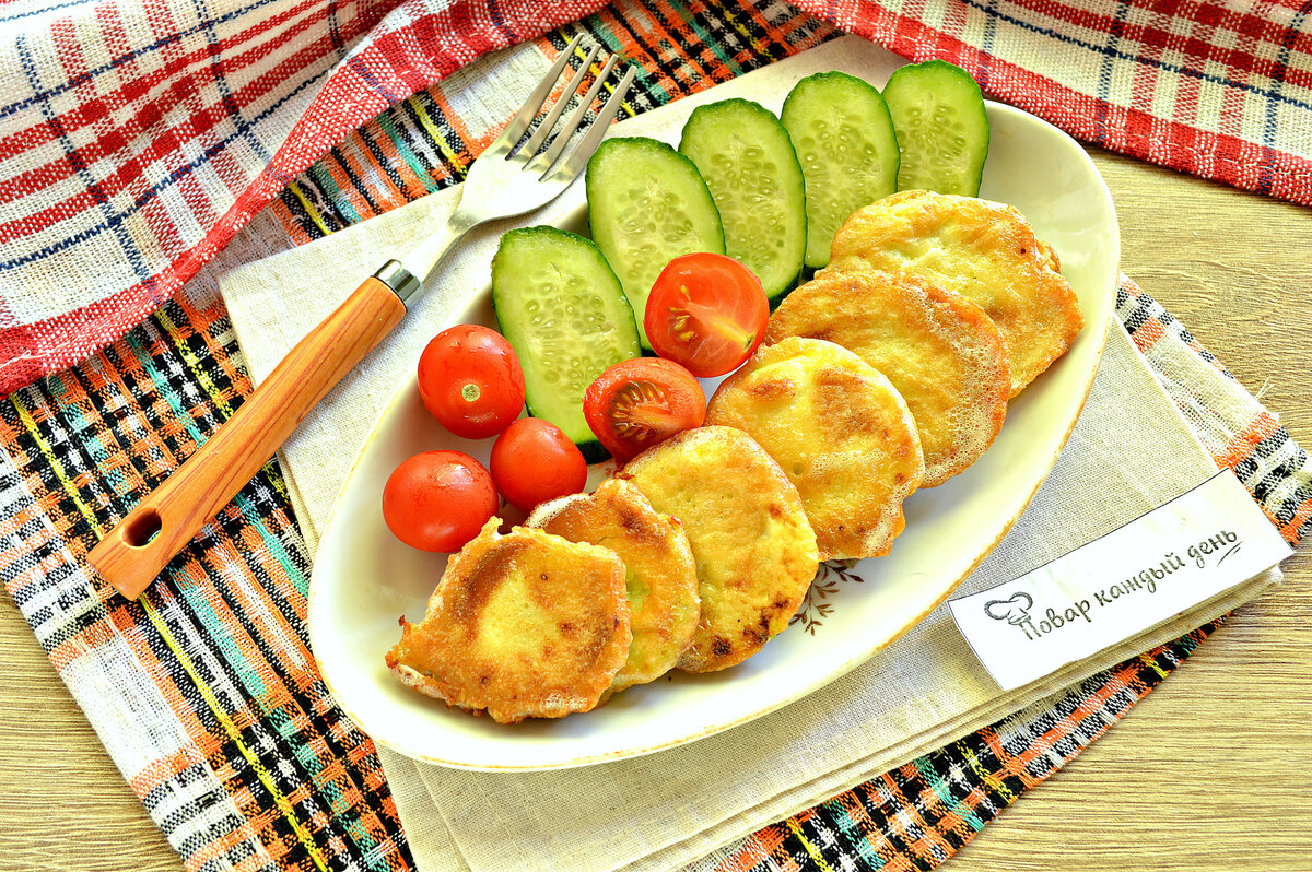 Это не стыдно предложить в качестве закусочного блюда на праздничном столе. Для жарки кабачков подготавливаем необходимый продуктовый набор. Из кухонной утвари нам потребуется разделочная доска, ножик, сковорода, миска, венчик, лопаточка для переворачивания. С молодого кабачка ножиком или специальной овощечисткой тонко срезаем кожицу. Семена мы удалять не будем, поскольку они в молодом кабачке еще не сформировались. Нарезаем кабачок на кольца с толщиной примерно 5-7 мл. Готовим кляр для кабачковых колец. В миску разбиваем куриное яйцо. К нему выкладываем майонез и пшеничную муку. Дополняем ингредиенты кляра солью, специями по своему вкусу, измельченным через пресс или терку чесноком. Тщательно ингредиенты кляра перемешиваем до образования однородной массы. На сковороду вливаем растительное масло и хорошо его прогреваем. Кабачковые кольца поочередно полностью погружаем в кляр. Из кляра сразу помещаем кольца на сковороду в масло. Жарим с двух сторон до золотистой корочки. Жареные