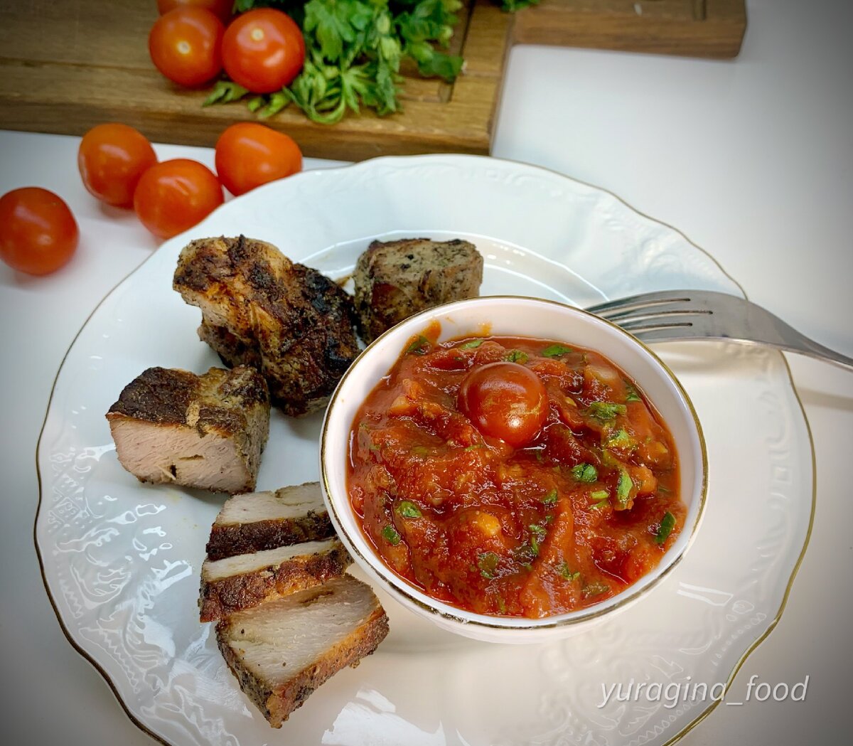 Друзья и снова здравствуйте, с вами как всегда Аня, рада видеть вас на своём канале! Всем давно известно, что вкусно приготовленный соус раскрывает истинный вкус шашлыка! Вы испытаете настоящее наслаждение, обмакнув в него жареные кусочки, ароматного мяса, не важно даже говядина это или свинина. Абсолютно любое мясо, благодаря правильно приготовленному соусу, станет еще вкуснее! Одним из главных ингредиентов в этом соусе являются маринованные помидорки черри. Именно они придают блюду особую пикантную нотку. Если вы ещё не пробовали соус по такому рецепту, обязательно приготовьте. Уверена, что вы и ваши гости оценят его по достоинству. Ингредиенты: Приступим к приготовлению: Нарезать мелко кинзу и репчатый лук, можно заменить на зелёный лучок и добавляем две столовых ложки любой томатной пасты Если вы как и я не любите кинзу замените на петрушку, да вкус будет отличаться, но не в худшую сторону это точно. Теперь добавляем пару чайных ложек готовой аджики, остроту определяйте п