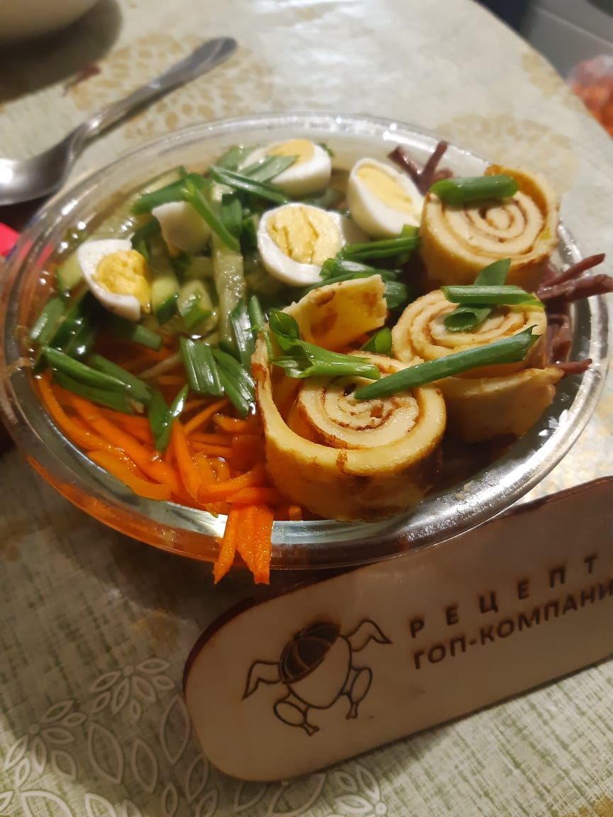 Признаюсь сразу: я так и не знаю, как же он правильно называется, потому что подобные супы присущи сразу нескольким национальным кухням. А гоп-компания давно хотела попробовать приготовить что-нибудь в этом стиле, поэтому получилась условная вариация на тему. Самое удобное в этом супе то, что в финале каждый выбирает сочетание продуктов. Хочешь мясной и острый? Пожалуйста! Хочешь максимально овощной и свежий? Да не вопрос.