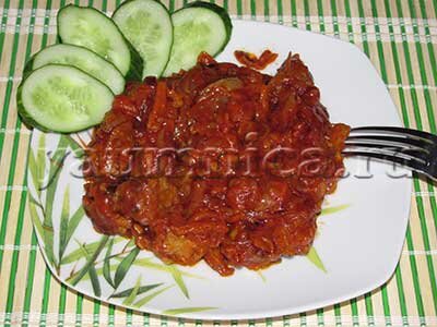 7. Готовый гуляш из говядины с подливой снимаем с огня и даем немного настояться. Выкладываем на блюдо и подаем к столу. К нему можно подать макароны, картофельное пюре или гречку. Всем желаю приятного аппетита!