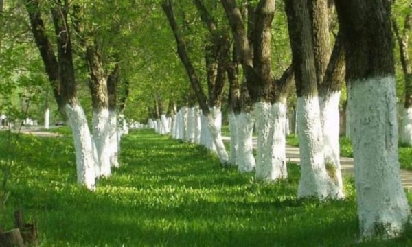 Поэтому для спасения деревьев от воздействия перепадов температур и прямых лучей солнца, отбеливают стволы белилами.. Белый цвет отражает солнечные лучи, и также сам меньше нагревается днем. Нанесение белил на ствол оказывается настолько эффективным, что может полностью предотвратить кору от растрескивания. Повреждение стволов обычно происходит в конце февраля - начале марта, поэтому наиболее благоприятное время для отбеливания деревьев - вторая половина декабря и, во второй раз, начало января. Стволы деревьев должны быть покрыты белилами к марту.