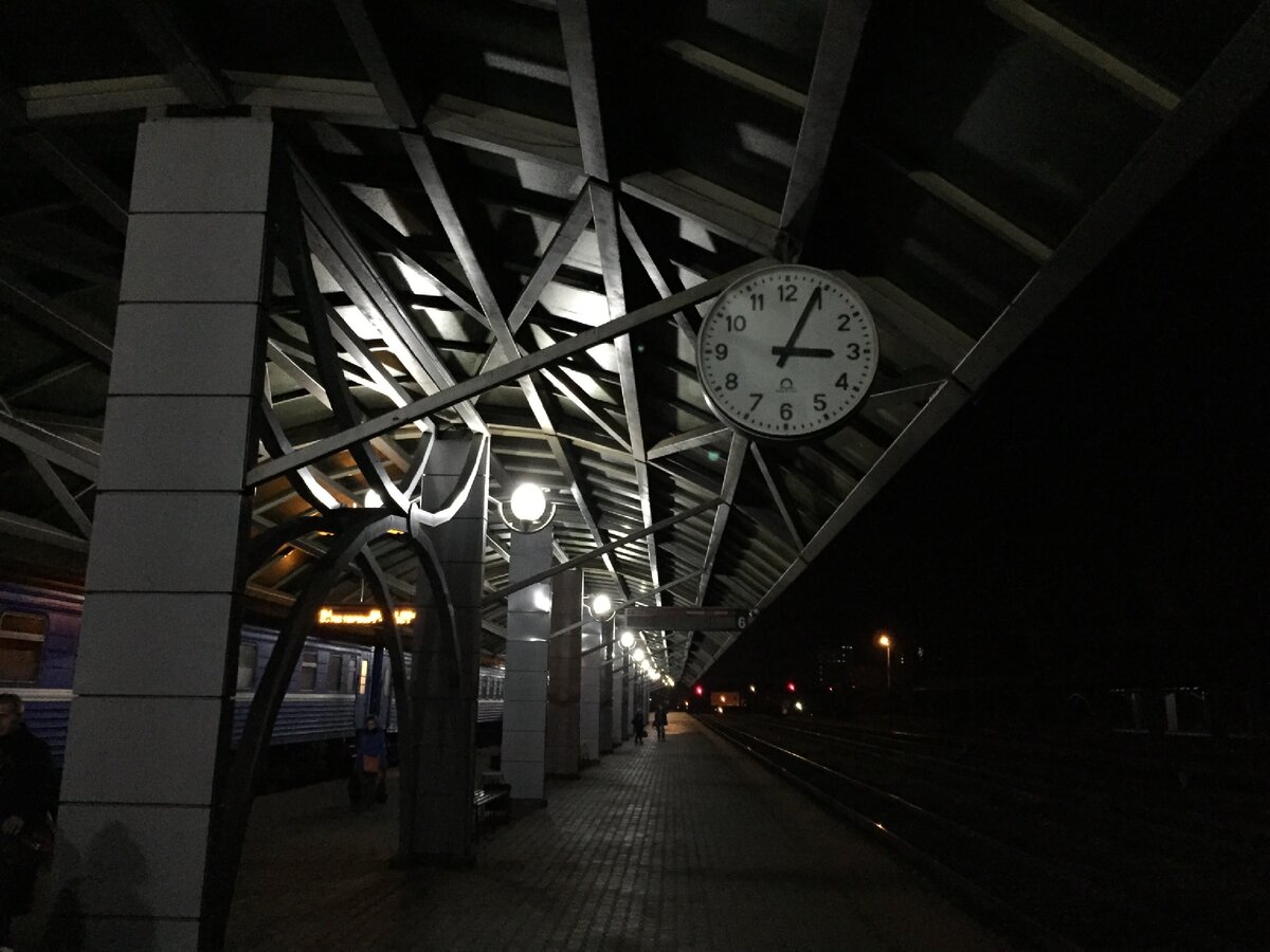 1. Я выехал из Петербурга на стандартном вечернем поезде, отходящем с Витебского вокзала в 18:23. Всё бы ничего, но в Витебск он прибывает в 3 часа ночи (в Минск в адекватные 7 часов утра). Когда я планировал трип, мне казалось, что будет терпимо подремать на вокзале пару часов - ох как я жестоко ошибался!