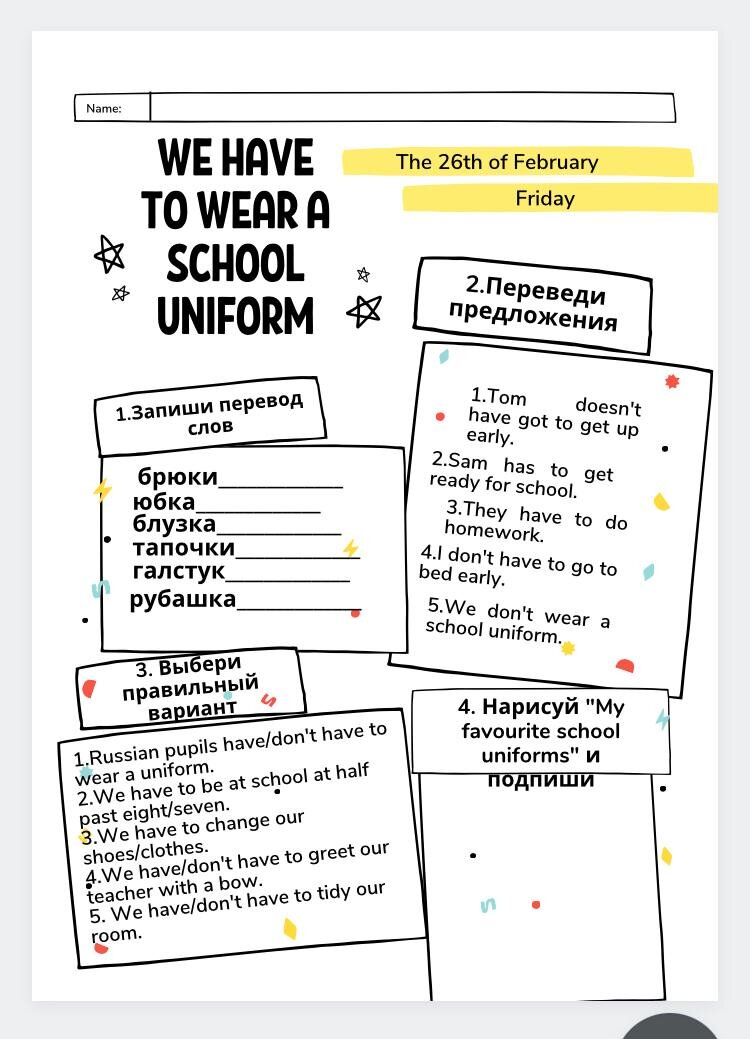 решение :Англиский язык самостоятельная работа на тему Wednesday 5 класс