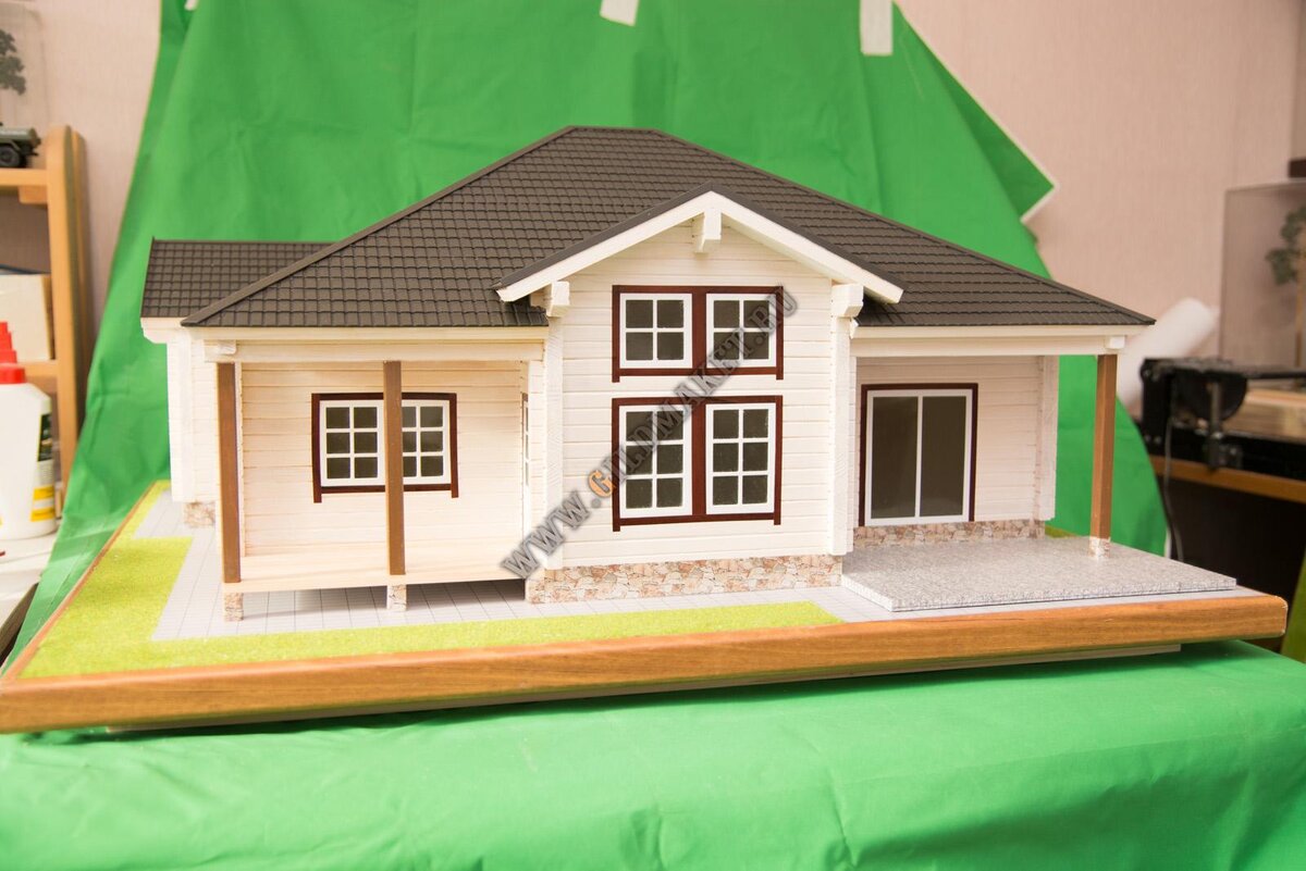 Ведь натуральный коттедж везти на два-три дня выставки крайне проблематично. А нашу уменьшенную копию деревянного загородного дома можно возить с собою хоть по всему земному шару. На любые деловые встречи, презентации, VIP-переговоры и