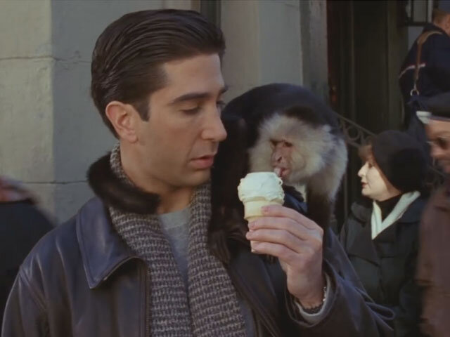 На всеобщее удивление, этим человек был Дэвид Швиммер, что весьма странно, ведь в сериале они были лучшими друзьями. Такую новость рассказал Мэтт Леблан (Джоуи) на интервью Джимми Киммелу: «Мне очень понравилась эта обезьяна, я вообще люблю животных, да и обезьяна была крутая. А вот Дэвид — не фанат. Просто… он же работал с ней больше всех. И каждый раз, когда ему нужно было с ней снова