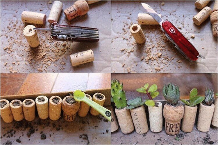 Наткнулась как-то на интересную идею украшать холодильник не магнитиками, а мини цветами в винной пробке. Настолько загорелась этой идеей, что тут же собрала все завалявшиеся пробки и пошла мастерить))