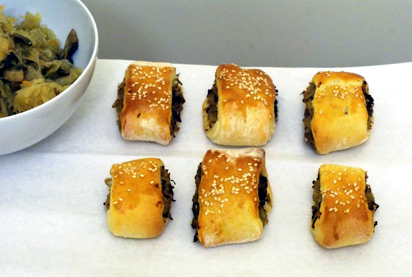 Дрожжевые булочки с капустой и грибами. Рекомендую готовить, как дополнение к борщу. По рецепту выходит 40 небольших булочек.