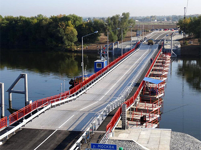 Мост представляет понтонную конструкцию длиной около 150 метров по которому организовано двустороннее автомобильное движение.