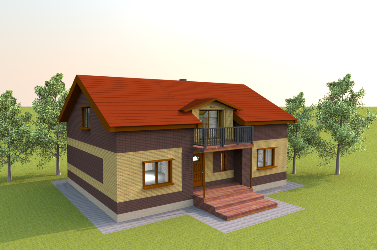Для облицовки дома используется 2 оттенка кирпича, по желанию. Кладка цоколя производиться из керамического рядового кирпича марки 150, производства ИЗКМ. Высота цоколя четыре ряда, 300 мм, ширина 380