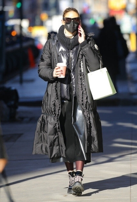 Весна в модной столице США только готовит свой приход, поэтому пока звезды продолжают выгуливать теплые аутфиты, экспериментируя с сочетаниями фасонов и представляя оригинальные идеи образов на каждый день. В этом году в фаворитах модных обозревателей оказалась бизнесвумен Оливия Палермо. Девушка делает ставку на лук в тотальном черном для стритстайл-выхода в последние зимние дни: знаменитость примеряет юбочную комбинацию с дутым жилетом и плащом, дополняя лук колготками с глянцевым эффектом и массивными ботинками на шнуровке.