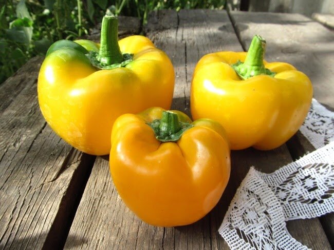 Если меня спросят, какой желтый перец самый крупный и красивый - не задумываясь посоветую этот сорт (точнее, гибрид). Когда он поспевает, все соседи любуются. Лампочки зажглись на перце - так говорят. Янтарно-желтого, солнечного цвета, с тугими боками, с толстой мясистой стенкой, сочный, крупный - таких сортов не так много.