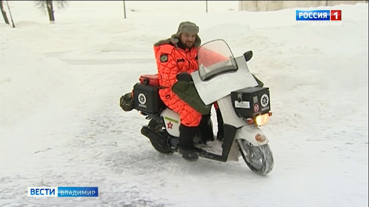 Из Москвы к Северному Ледовитому океану через Владимир. Рекордсмен Книги рекордов Гиннеса, профессиональный каскадер, экстремал Александр Пересвет отправился в путь на маленьком скутере и в зимние морозы.