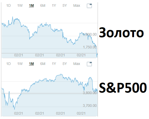 Посмотрите на приведенные скриншоты - это динамика за месяц. Защитило золото инвесторов от текущей волатильности? Вернитесь назад и посмотрите на динамику в марте 2020 года, в иные периоды волатильности - разве там ситуация лучше?🧐📉
