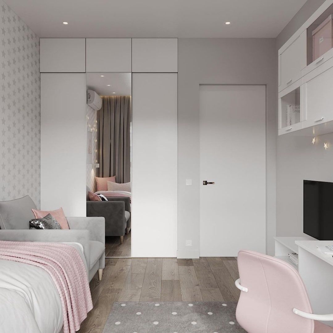 Нежные пастельные цвета и стильная белая мебель создают уютную, но не давящую атмосферу.