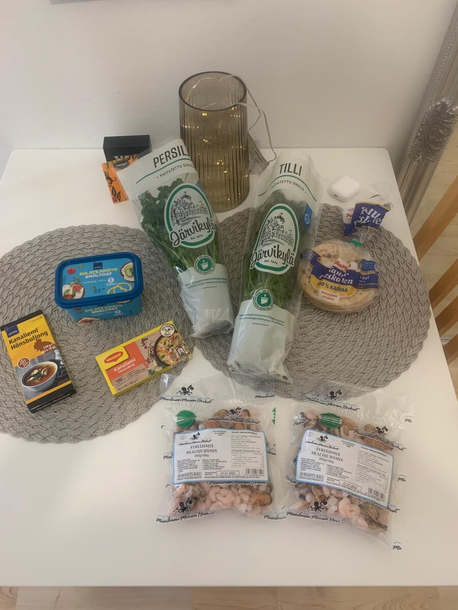 Захотелось мне супчика какого-нибудь необычного, сходил в магазин, купил кубики с куриным бульоном, плавленый сыр, укроп, петрушку, 400 грамм смеси креветок и мидий. Лук и морковка у меня уже были. Для начала надо будет поставить кастрюлю с водой и довести её до кипения.