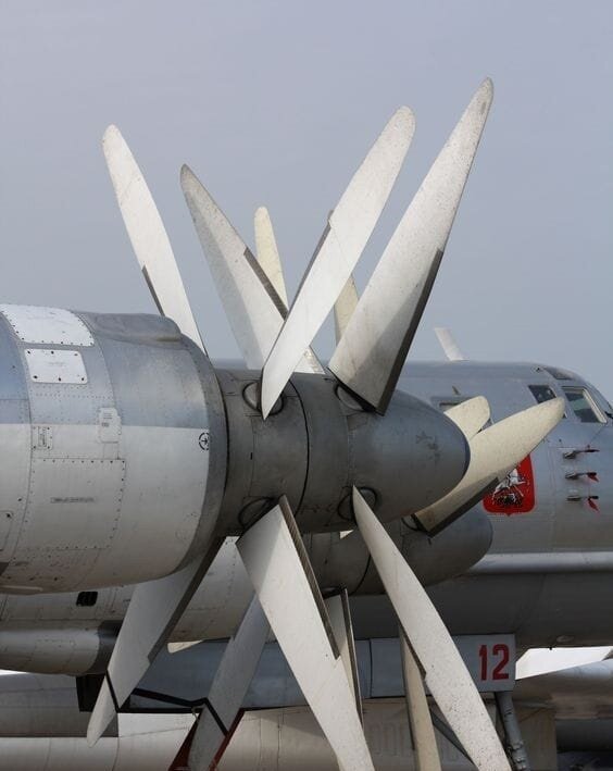 🔹Чтобы 15000 л.с. не разорвали винт, тот необходимо было сделать семиметровым, что не подходило по компоновочным соображениям. Поэтому каждый из четырех моторов самолета вращает два соосных винта с уникальной