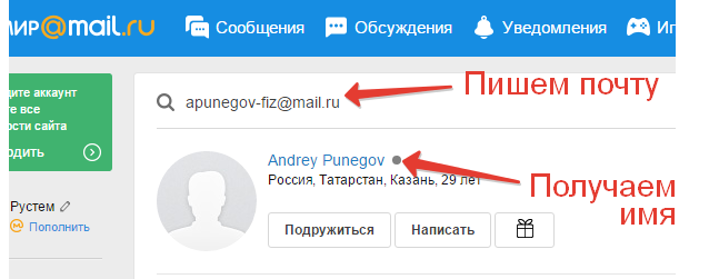 3. Ищем и получаем данные аккаунта с именем и фамилией.
