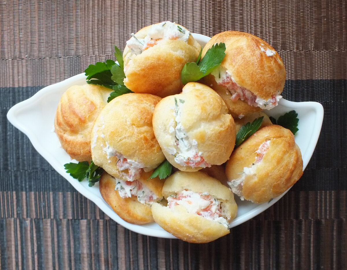 На каждой булочке надрезаем макушку и наполняем начинкой.