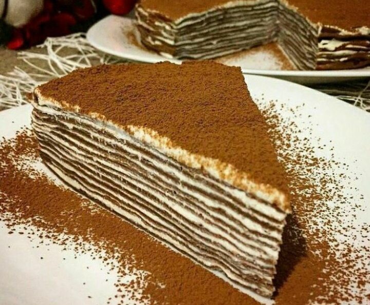 4. Тортик поставить на пару часов в холодильник, а лучше на ночь. Перед подачей посыпать какао.
