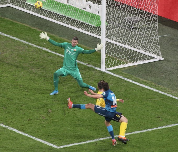 Сначала Поярков поразил свои ворота, после чего Далер Кузяев забил второй мяч. Однако Зенит не смог сохранить преимущество и за несколько минут до финального свистка пропустил. Соу оформил дубль и принес своей команде трудовую ничью.