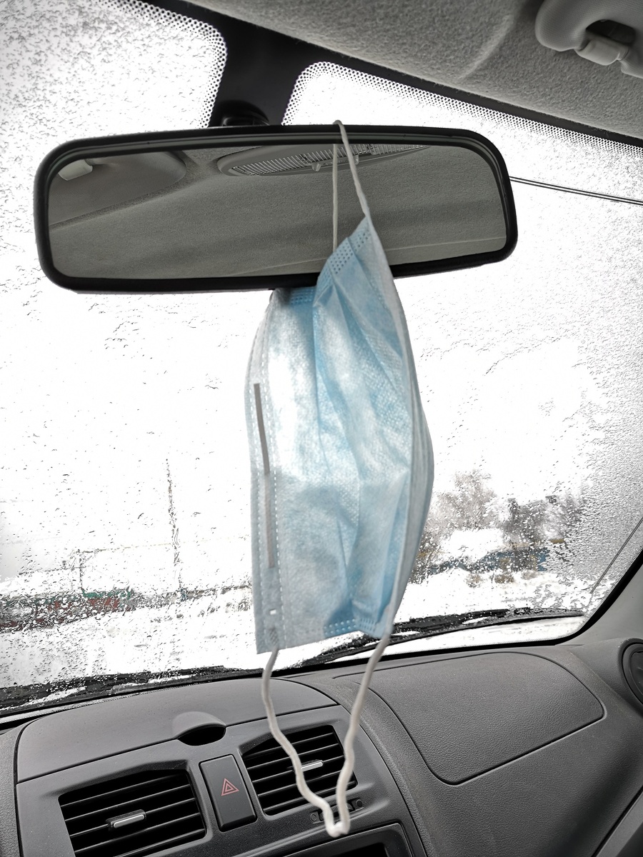 Вот такую картину можно наблюдать у многих автолюбителей - медицинская маска, висящая на креплении зеркала заднего вида. С одной стороны, это удобно: маска всегда на виду у водителя и, отправляясь, например, в магазин, водитель не забывает о ней. НО, УВАЖАЕМЫЕ ЧИТАТЕЛИ, НЕ СТОИТ ЗАБЫВАТЬ, ЧТО НА МАСКЕ МОГУТ СКАПЛИВАТЬСЯ БАКТЕРИИ И ВИРУСЫ! Получается, что водитель, вешая ранее надетую маску на