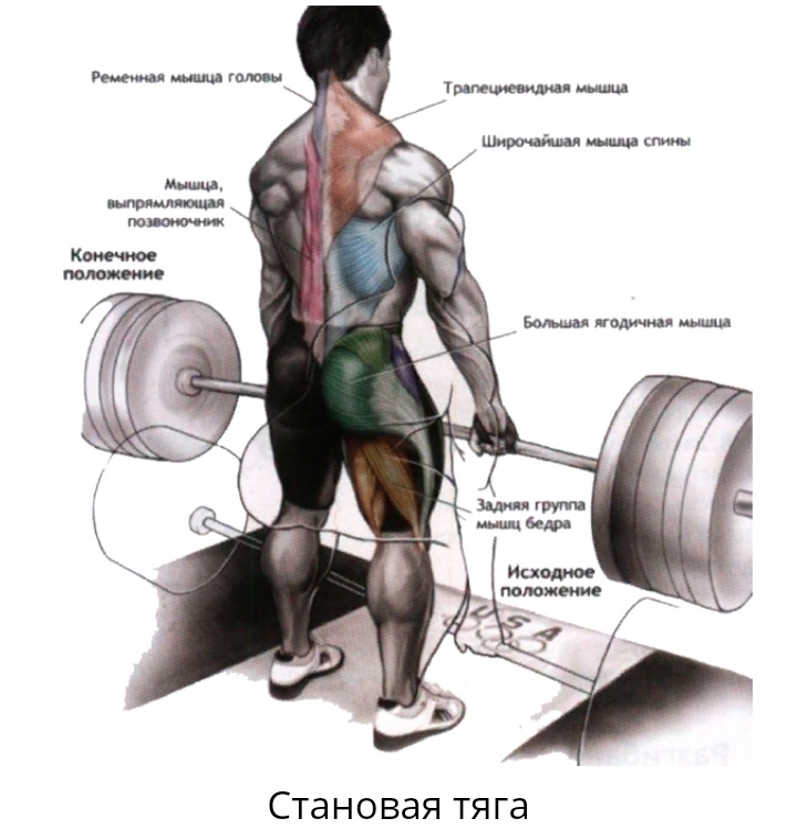 В общем, этим я хочу сказать, что развивать разгибатели мышц (столбы) + трапецию для атлетического вида конечно же нужно, но ни как не первым упражнением… поэтому запомните раз и навсегда, ну и конечно же если ваша цель – гипертрофия мышц (рост их, размеры) в общем чистый бодибилдинг, то становую тягу лучше всего поставить в конце тренировки.