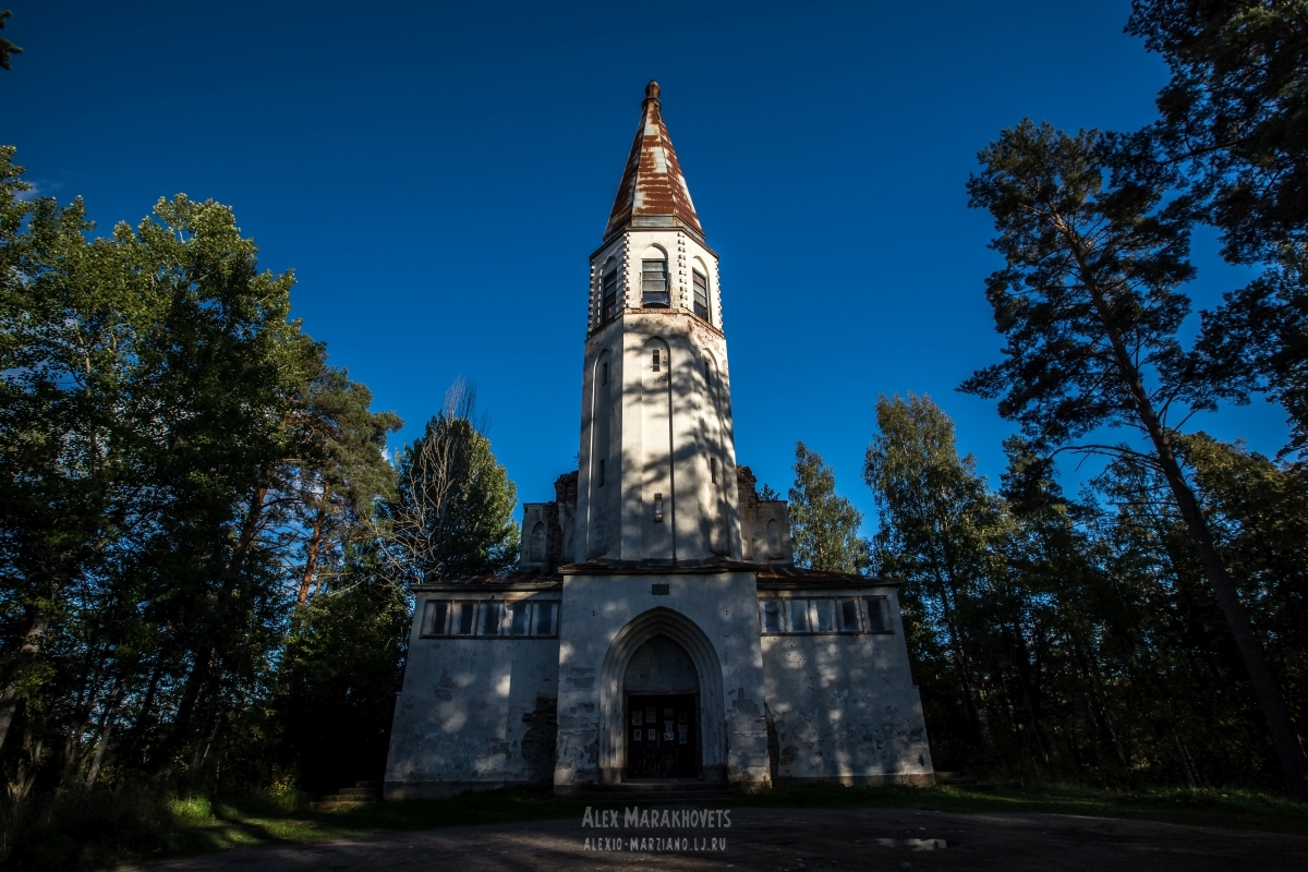 Через километр увидели отворотку и поехали по ней. И только в конце дороги увидели кирху — словно ракета на стартовом столе, готовая устремиться в небо.
