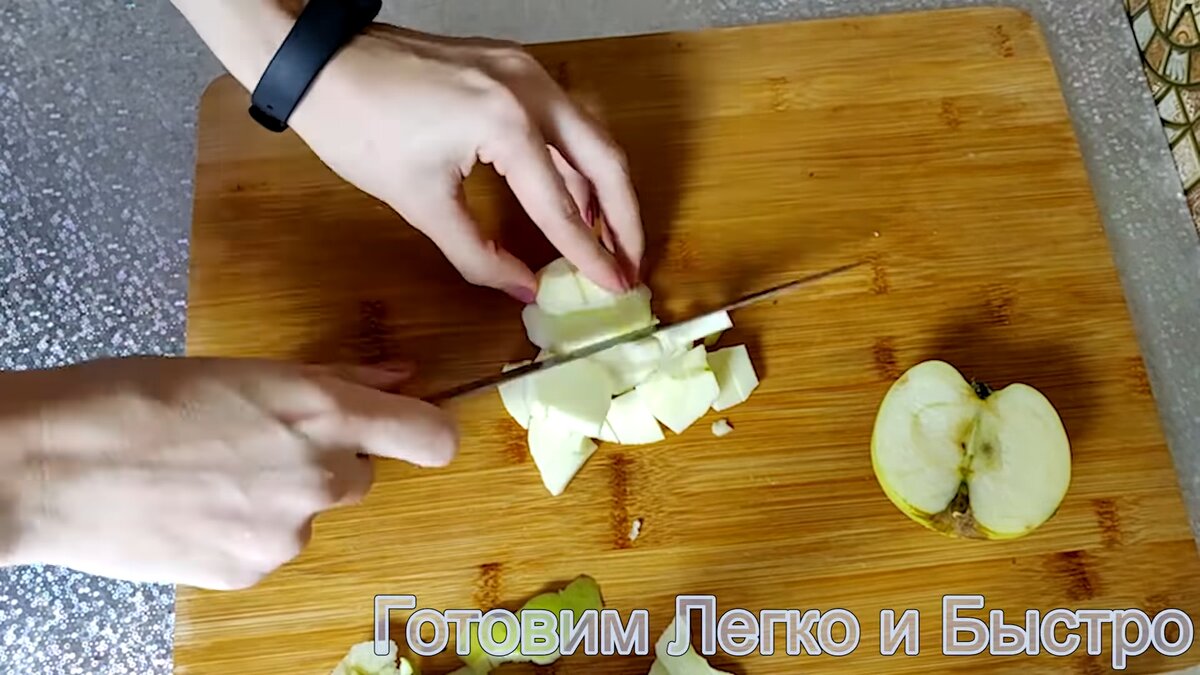 Готовится всё просто. Яблоки очищаем от кожуры и нарезаем на не большие кубики.