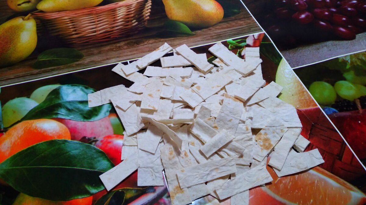 Возьмем лаваш разрежем его на прямоугольные пласты, а потом нарежем полосками как на фото ниже