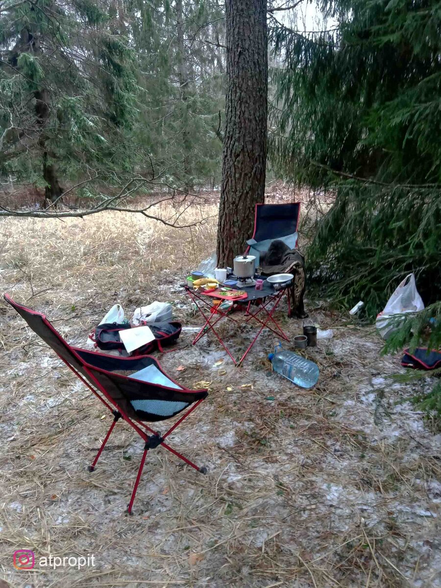 Минус 7 градусов показывал термометр на улице. Сначала это нас немного напрягло и ввело в раздумье, ехать нам на шурф хабарного места или нет. Провизией затарены, в бензобаке авто ждёт заправленный ещё по старым ценам бензин. Делать дома особо нечего и мы помчались на коп. Добрались благополучно, разбили наш скромный походный лагерь и пошло распределение труда ,кто копать, а кто суп варить).