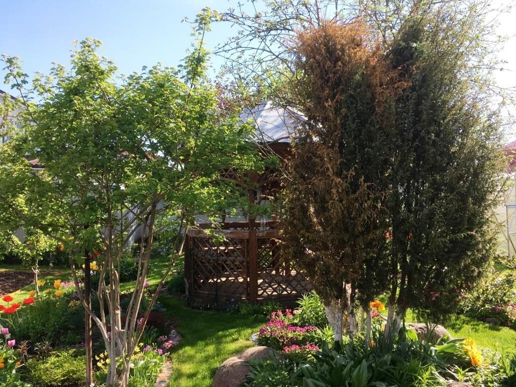И в итоге, можжевельник прекратил засыхать. Все фото в этой статье я сделала весной 2019 года.