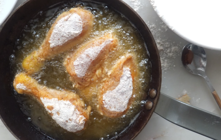 Еще один страшный грех — включить плиту, поставить сковородку, сразу налить на нее масло и положить курицу. Мясо в результате такого трюка прилипнет, волокна разорвутся, и сочной курицы у вас уже не получится. Не говоря уже о том, что прилипшие кусочки начнут пригорать, чадить, испортив все настроение. Сперва нужно как следует разогреть сковороду, а потом уже класть на нее мясо или птицу. А если собираетесь жарить в масле, то налить его на разогретую сковороду, и подождать, пока оно как следует раскалится.