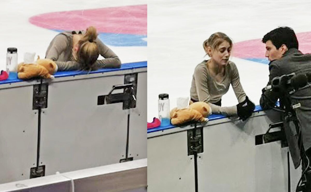 После проката Алёна долго стояла у бортика и не могла сдержать слёз. Но, похоже, что Сергею Розанову удалось немного успокоить спортсменку - спустя пару минут она возобновила тренировку и смогла исполнить несколько тройных сальховов и дважды прыгнула каскад 3Ф+3Т.