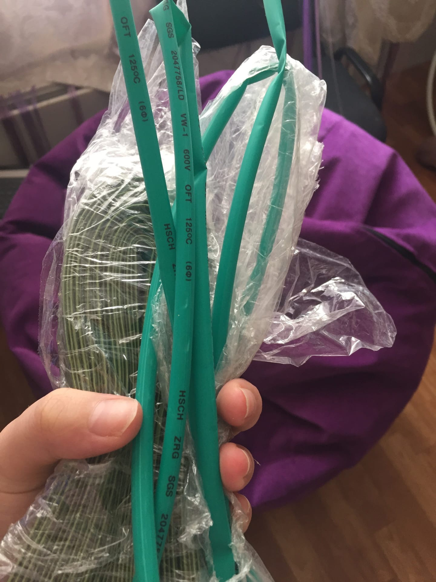 Я не покупаю нарезанную термотрубку, которая удобна для электриков и тех, кто занимается радиотехникой. Обычно, она имеет не те размеры, которые мне необходимы. Поэтому, я покупаю в специализированных магазинах сразу большим мотком - от 5 метров. Выглядит она так.