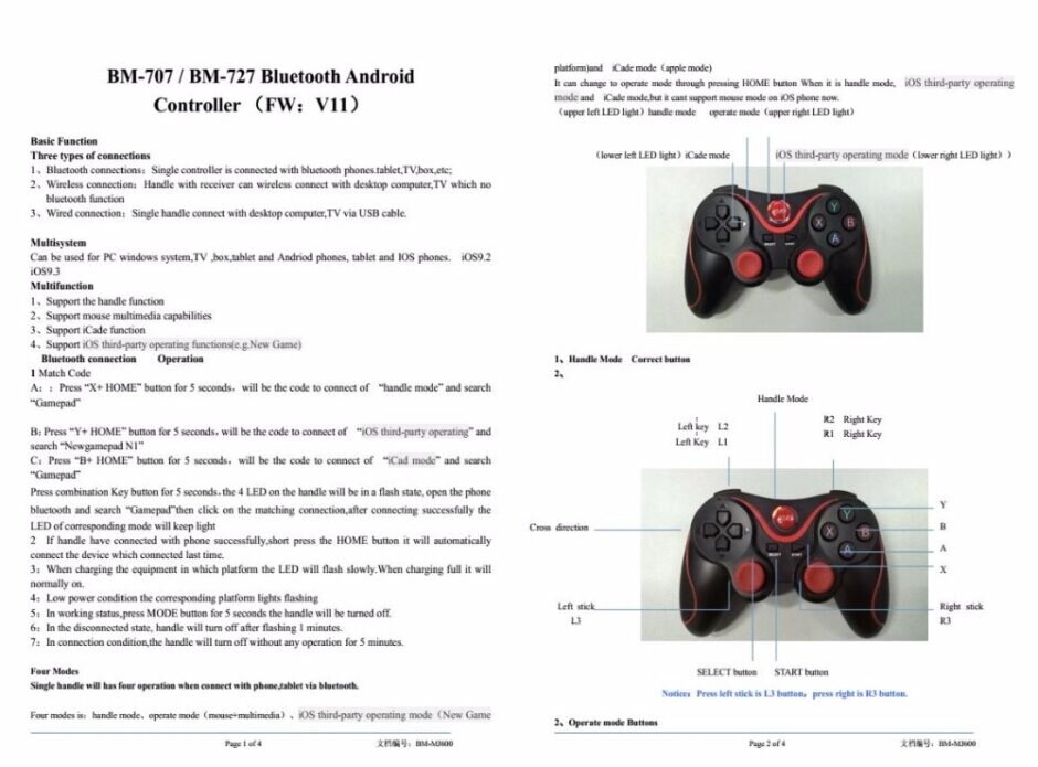 B + Home — для подключения к iOS в режиме iCade. После сопряжения установите Английский язык ввода в настройках iPhone (в некоторых случаях данную установку необходимо произвести перед сопряжением геймпада с телефоном).
