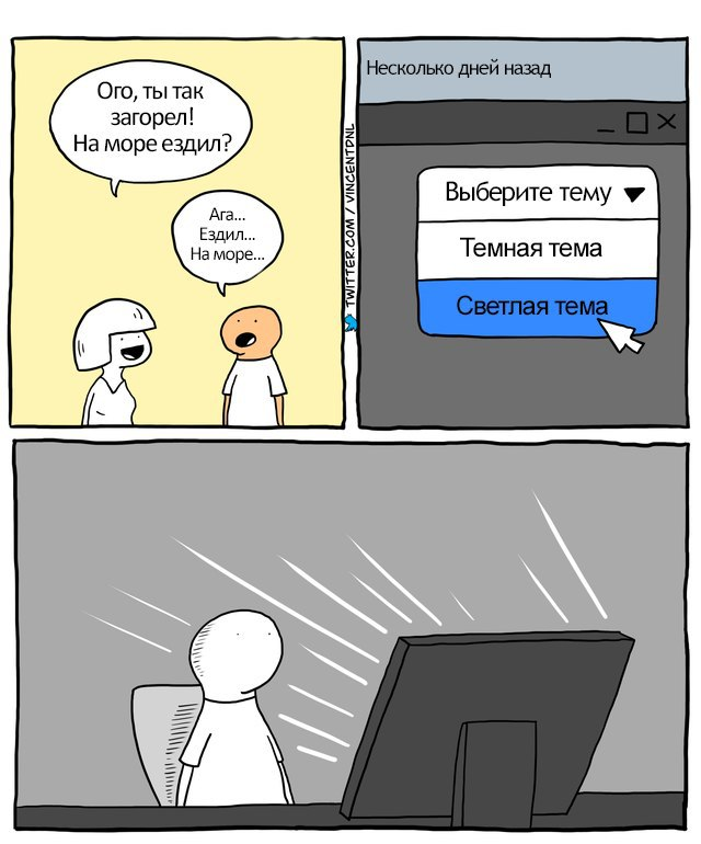 Если бы загорать от светлой темы было возможно, программисты бы все равно были бледные