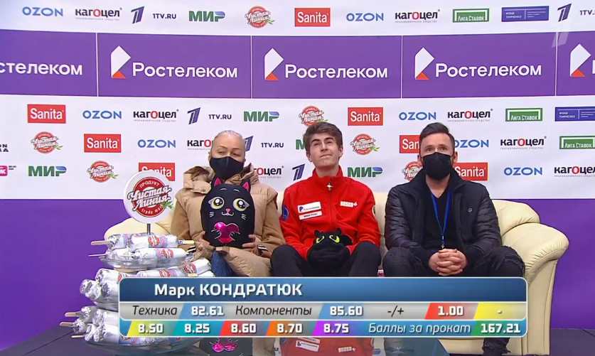 5. Марка Кондратюка очень поддерживал зал, вот за него Кубку ПК спасибо, и Марк ему наверняка тоже очень благодарен. От него идёт как раз светлая и добрая энергетика, поэтому он мне нравится, вообще парень с личностью, с характером. Я очень его поддерживала сегодня, но... Откатал на троечку, хоть и старался. Баллов дали достаточно, не обидели точно.