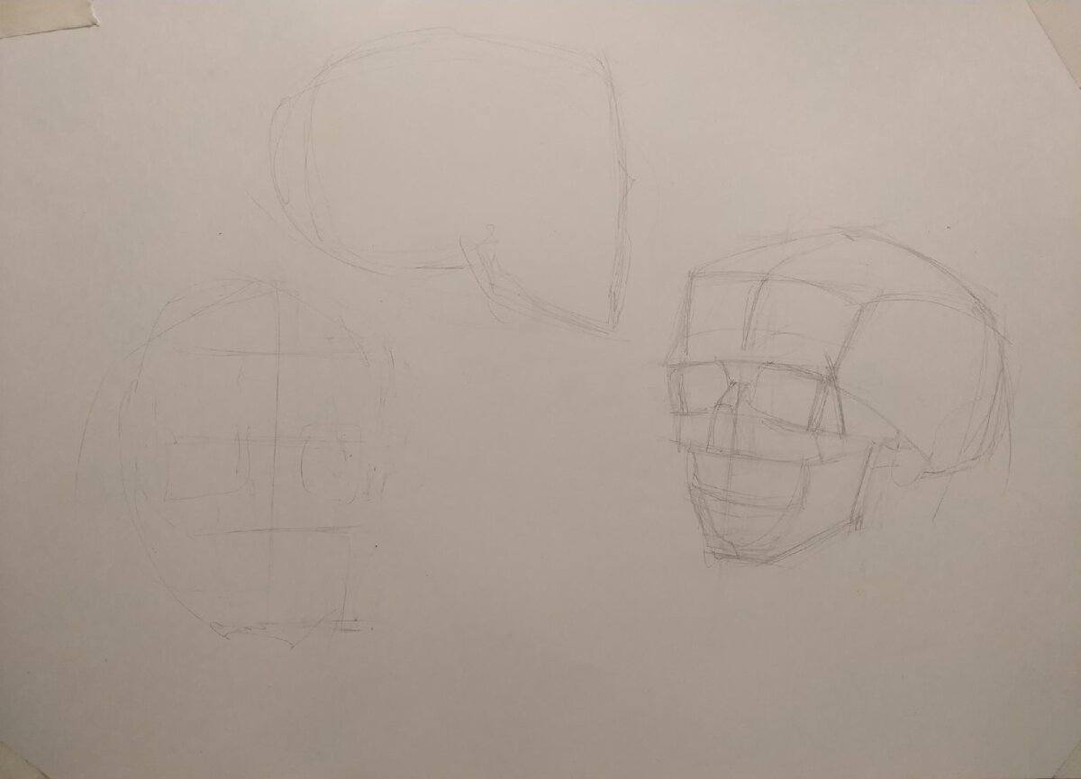 У человеческой головы и, в особенности, черепа есть закономерности, которые стоит намечать в первую очередь - это основные трети лица.